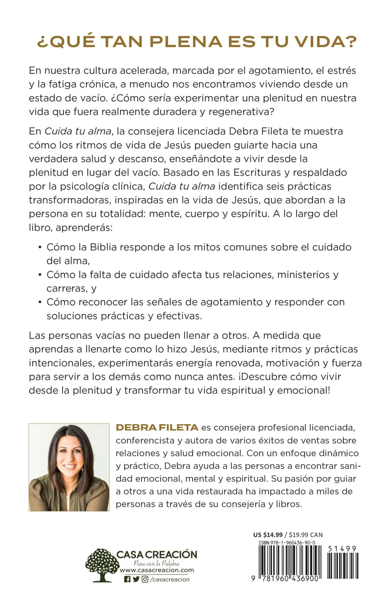 En Cuida tu alma, la consejera licenciada Debra Fileta te muestra cómo los ritmos de vida de Jesus pueden guiarte hacia una verdadera salud y descanso, enseñándote a vivir desde la plenitud en lugar del vacío. Basado en las Escrituras y respaldado por la psicología clínica, Cuida tu alma identifica seis prácticas transformadoras, inspiradas en la vida de Jesús, que abordan a la persona en su totalidad: mente, cuerpo y espíritu.