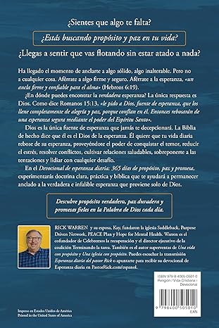 En este Devocional de esperanza diaria, encontrarás doctrina bíblica práctica y clara que te ayudará a permanecer anclado a la esperanza inquebrantable y verdadera que solo proviene de Dios. Descubre lo que Dios tiene preparado para ti en las páginas del Devocional de esperanza diaria: