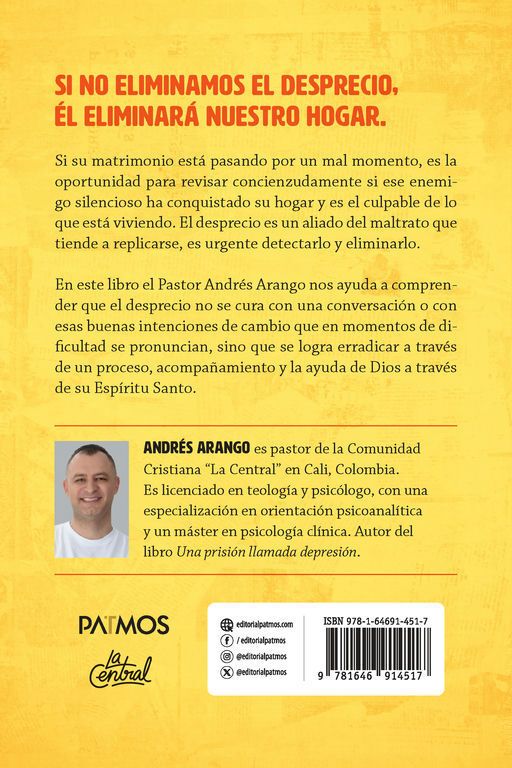 En este libro el Pastor Andrés Arango nos ayuda a comprender que el desprecio no se cura con una conversación o con esas buenas intenciones de cambio que en momentos de dificultad se pronuncian, sino que se logra erradicar a través de un proceso, acompañamiento y la ayuda de Dios a través de su Espíritu Santo.