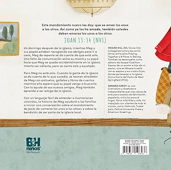 En este libro ilustrado, los padres de Meg la dejan accidentalmente en la iglesia después del servicio de la mañana, lo que la asusta. Pero Meg no está sola. Varias personas de la iglesia se quedan con ella hasta que su padre regresa. Estos amigos de la iglesia la cuidan dándole cosas como pañuelos, galletas y libros de cuentos. Meg aprende a ser una amiga para los demás en la iglesia. Con un lenguaje fácil de entender e ilustraciones coloridas, este libro busca que los niños disfruten aprendiendo el mandato de Jesús de "amarse unos a otros". TGC Kids quiere explicarles a los niños de 3 a 7 años que Dios ha provisto la iglesia local para que sea su comunidad amorosa.