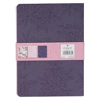Líneas florales color lavanda y diseños artísticos adornan las suaves cubiertas color púrpura bígaro del tercer cuaderno.