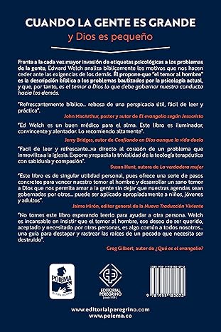 Frente a la cada vez mayor invasión de etiquetas psicológicas a los problemas de la gente, Edward Welch analiza bíblicamente los motivos que nos hacen ceder ante las exigencias de los demás. Él propone que “el temor al hombre” es la descripción bíblica a los problemas bautizados por la psicología actual, y que, por tanto, es el temor a Dios lo que debe gobernar nuestra conducta hacia los demás.