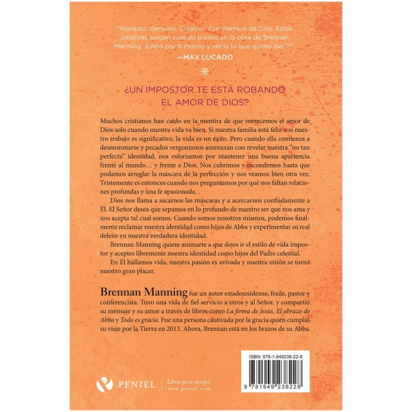 Brennan Manning quiere animarte a que dejes atrás el estilo de vida del impostor y aceptes libremente tu identidad como hijo del Padre celestial. En Él hallamos vida, nuestra pasión se aviva y nuestra unión con Él se convierte en nuestro mayor gozo.