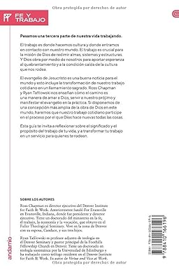 El evangelio de Jesucristo es una buena noticia para el mundo y esto incluye la transformación de nuestro trabajo cotidiano en un llamamiento sagrado. Ross Chapman y Ryan Tafilowski nos enseñan cómo el camino es una manera de amar a Dios, servir a nuestro prójimo y manifestar el evangelio en la práctica. Si disponemos de una concepción más amplia de la obra de Dios en este mundo, haremos que nuestro trabajo cotidiano participe en el proceso por el que Dios hace nuevas todas las cosas.