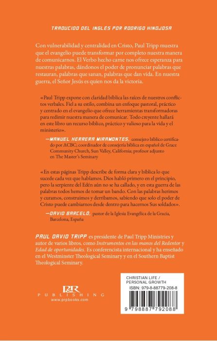 Con vulnerabilidad y centralidad en Cristo, Paul Tripp muestra que el evangelio puede transformar por completo nuestra manera de comunicarnos. El Verbo hecho carne nos ofrece esperanza para nuestras palabras, dándonos el poder de pronunciar palabras que restauran, palabras que sanan, palabras que dan vida. En nuestra guerra, el Señor Jesús es quien nos da la victoria.
